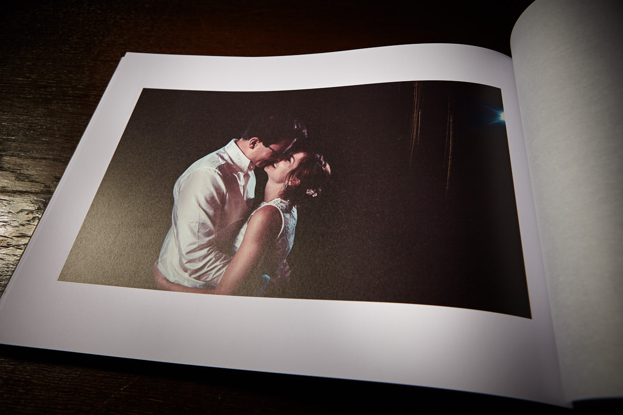 Grundsätzlich erhaltet ihr euer persönliches Fotobuch zur Hochzeit mit einer Layflat Bindung. Das heißt, alle Seiten sind flach aufschlagbar und es ist sogar möglich, Fotos über beide Seiten zu legen, ohne dass sie beim Aufschlagen des Albums in einem Knick verschwinden. Ihr seid Fans der traditionellen Buchbindung? Kein Problem. Gern biete ich meine Fotobücher auch in einer konventionellen Bidung mit Falz und Knick an.