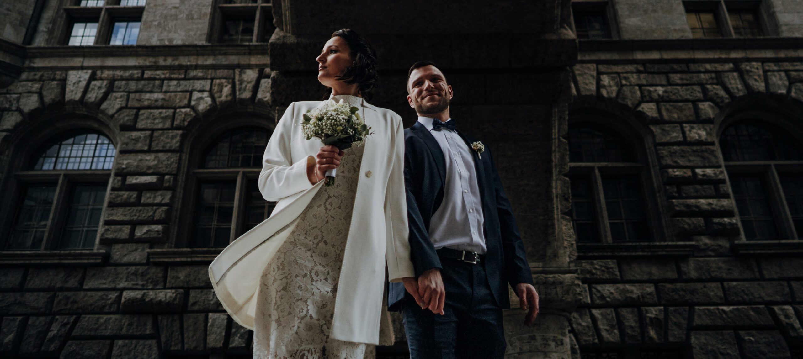 Wir sind am neuen Rathaus verabredet und wollen die ersten Bilder gleich vor der Trauung machen.